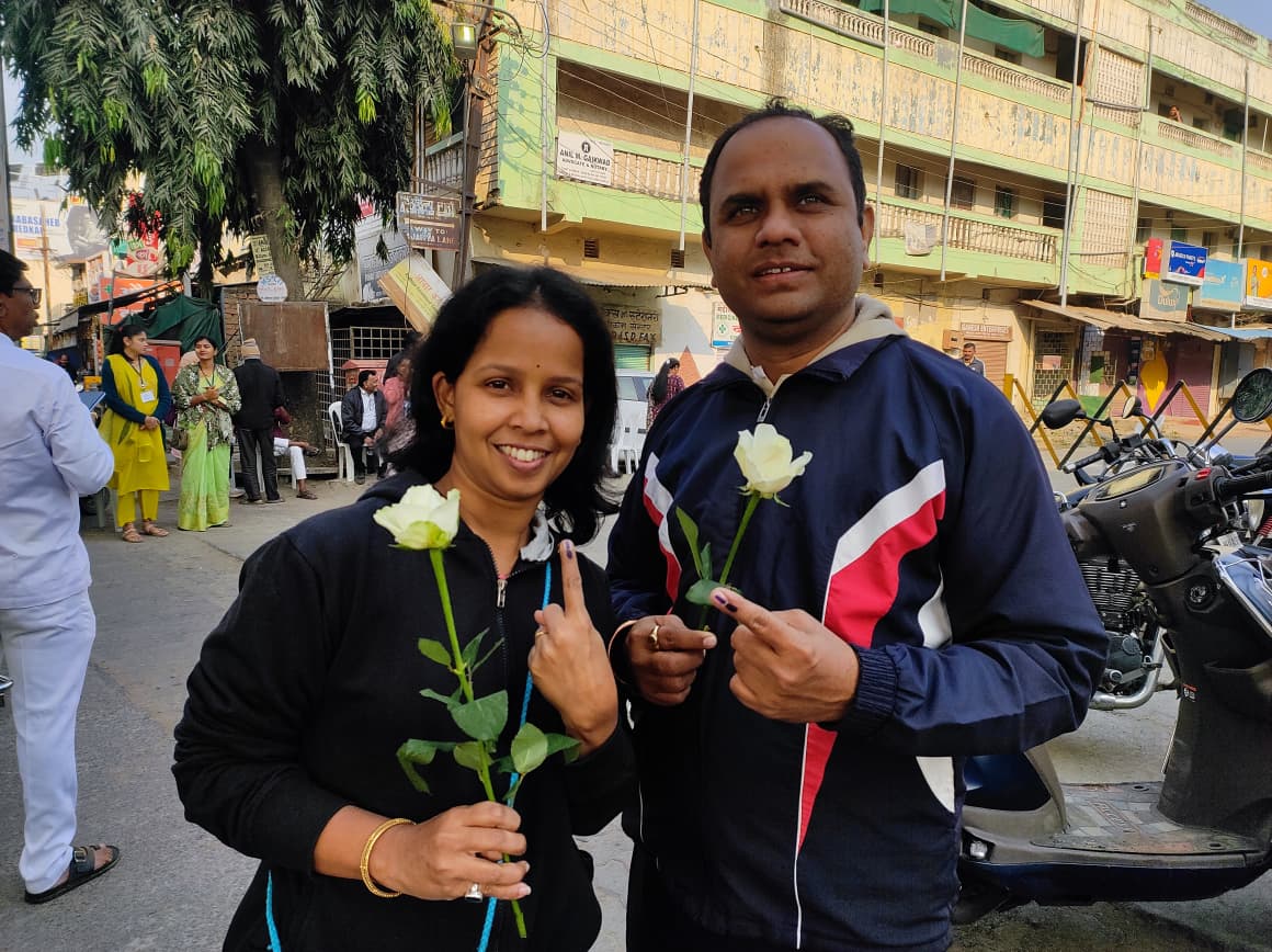 नागपूर जिल्ह्यातील वाडी इथे तरूण जोडप्याचे गुलाबाचे फूल देऊन मतदारसंघावर स्वागत